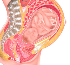 En la mujer embarazada, el aumento del tamaño uterino provoca una dificultad de retorno de la sangre de las extremidades inferiores y de la pelvis. Estas zonas serán las más afectadas en caso de que ocurra una trombosis.